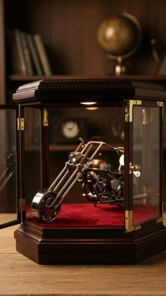 Whether you’re a motorcycle enthusiast or a lover of quirky collectibles, this miniature iron bike sculpture makes a bold decorative statement. Its detailed construction showcases gears, chains, springs, and bolts — reflecting the beauty of raw metal craftsmanship.
